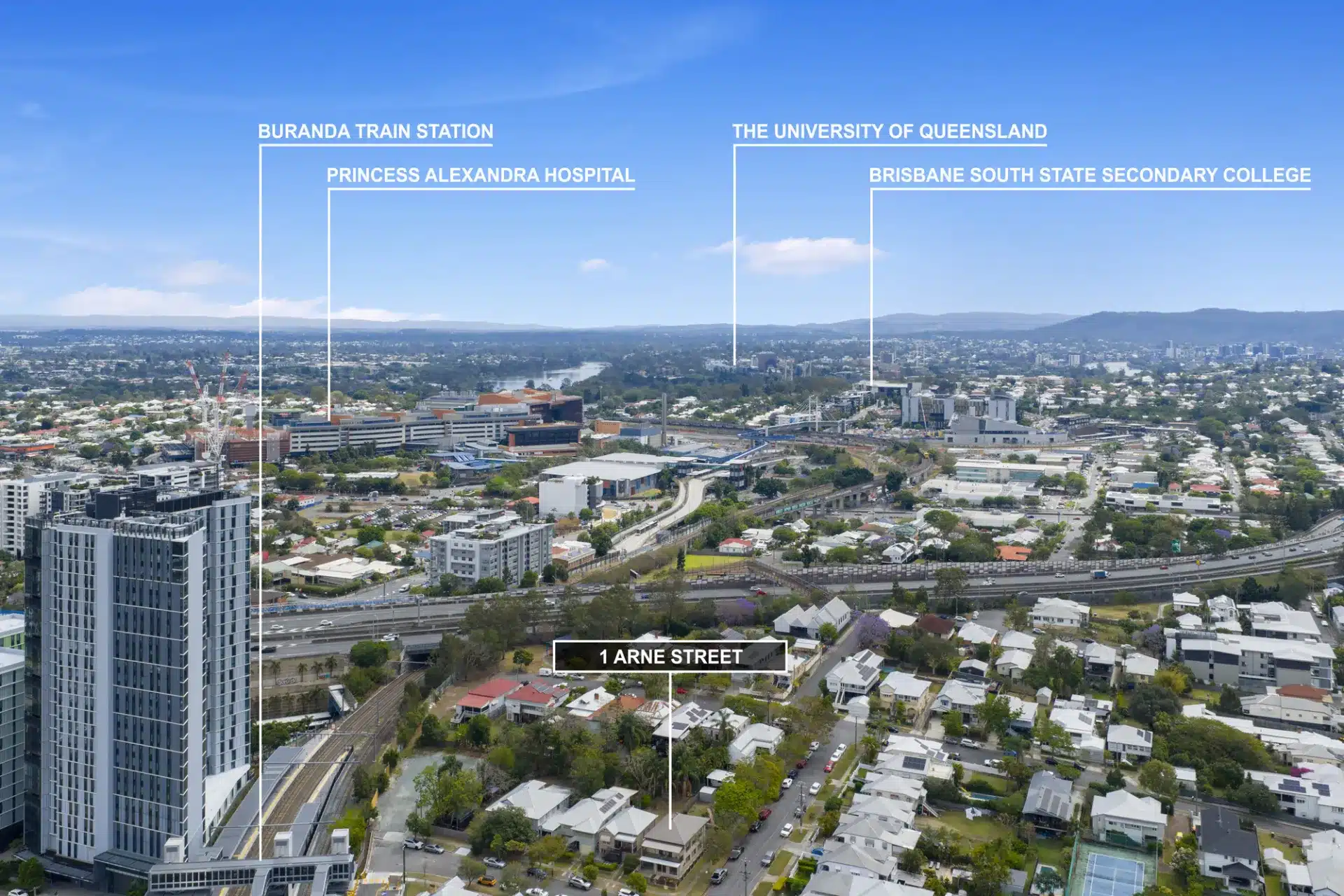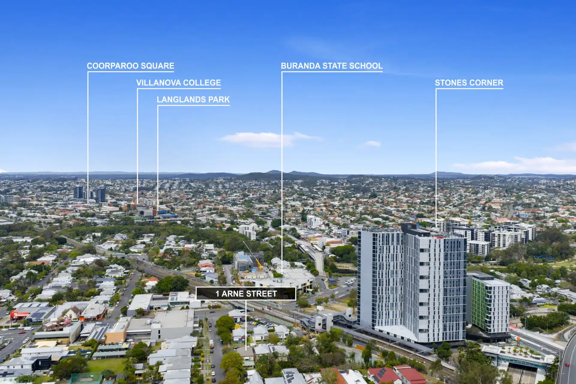 Steps from Buranda train and busway station, the PA hospital, and Hanlon Park’s 5 hectare greenspace, it’s an incredibly well-connected lifestyle base in one of Brisbane’s most sought-after pockets. Just 13 minutes cycle to the city, it’s a prime medical precinct address with seamless links to the Greenslopes, Children’s and Mater hospitals, plus UQ and QUT campuses, and a selection of elite schools at St Lawrence’s, Somerville, Churchie and Villanova.