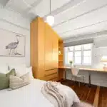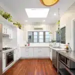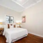 It’s a beautifully honed layout; mature greenery shades the home from the afternoon sun, the master is generously proportioned with French doors to the living room – the dining, kitchen and lounge, extend to beautiful alfresco zones and cool breezes off the river, while three-way bathroom offers a bespoke, spa-like experience, complete with a Japanese soaking tub.